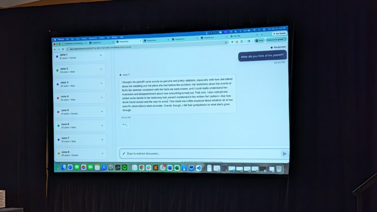 The process did demonstrate a truism with all AI: we need to be precise about what question we ask it to answer. An AI “jury” can tell you how a scripted version of your case might land with a large, varied, simulated audience. It may be able to tell you how a real jury will respond to the living, breathing messiness of trial, but only if given that chance.